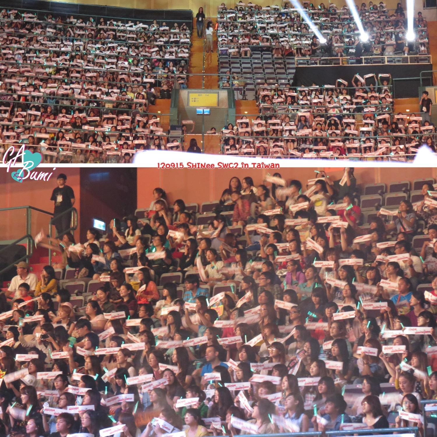 Chłopcy pobiegli na prawą stronę sceny i stanęli w rzędzie, by ukłonić się fankom. Jonghyun i Key byli obok siebie